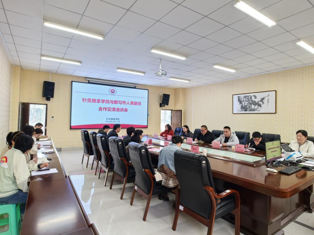 甘龙飞院长介绍了都匀市人民医院的发展情况及人才需求,表达了医院高度重视与我校的合作、助力地方医疗卫生事业发展的意愿,并期待与针灸推拿学院在人才培养、科研协作等方面建立长期稳定的合作关系。